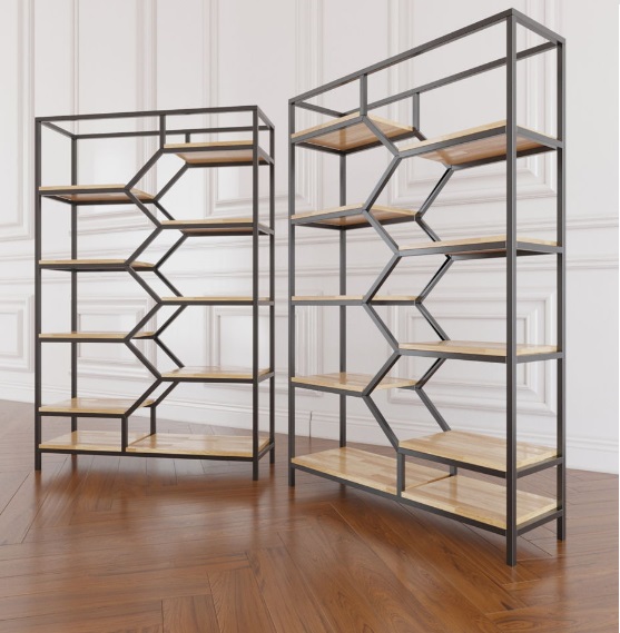To meet diverse customer needs, we offer customizable dimensions, colors, and finishes. Whether you prefer darker wood tones, different geometric layouts, or adjustable shelving, the design can be tailored to suit your preferences or match specific interior projects.