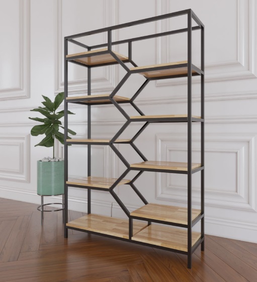 The standout feature of this shelf model is its unique geometric pattern. The V-shaped and angled crossbars are not only visually striking but also serve to enhance structural rigidity.